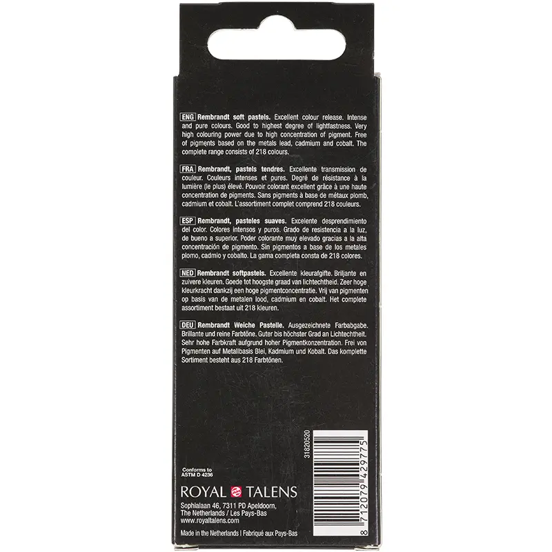 Szeroka gama kolorów obejmuje aż 218 kolorów miękkich pasteli, charakteryzujących się wyjątkową czystością i intensywnością. Zarówno w wersji pełnej, jak i w połówkach, pastele te zachwycają trwałością i jakością kolorystyczną. Tworzone z pasją i precyzją pastele Rembrandt holenderskiej firmy Talens należą do najpopularniejszych pasteli suchych na świecie. Nie bez powodu uznaje się je za jedne z najlepszych na rynku, szczególnie dla wymagających twórców szukających niezawodnych, profesjonalnych narzędzi.