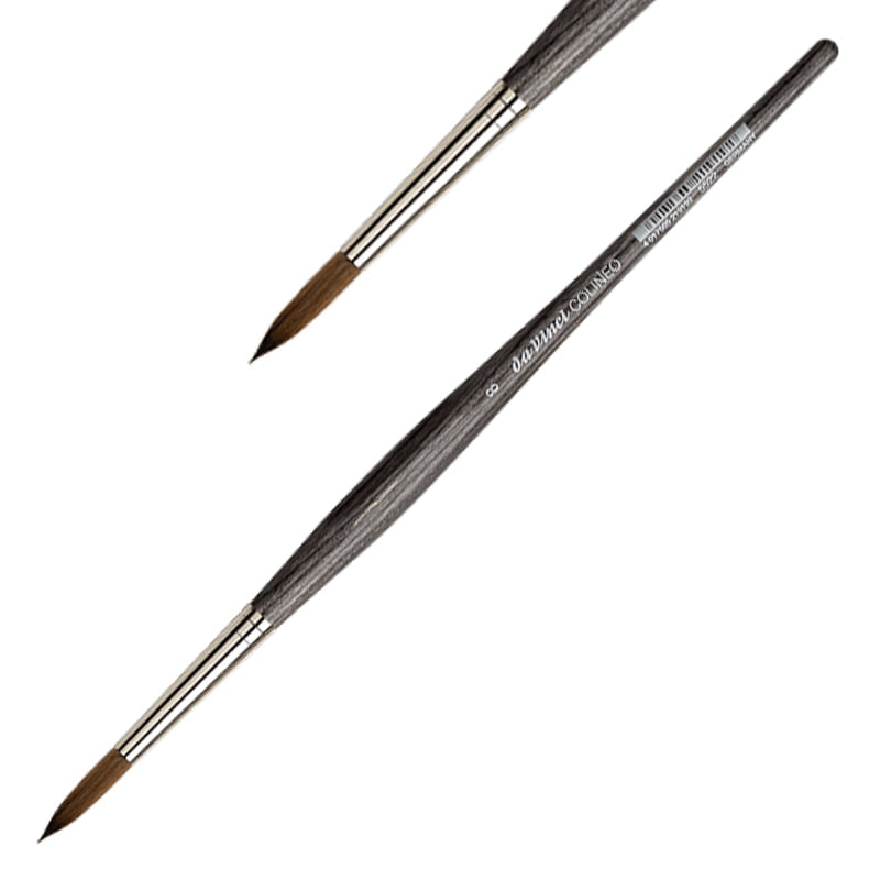 Seria pędzli akwarelowych Colineo 5522 Round to okrągły pędzel z bardzo precyzyjnym szpicem. Włosie ma bardzo dużą elastyczność i absorpcję farb, co czyni go idealnym narzędziem do precyzyjnej pracy w technice akwareli. Trzonek pędzla wykonany jest z krótkiego, wodoodpornego wielobarwnego drewna laminowanego hi-tech, esagonalnego kształtu ułatwiającego chwyt, ze srebrną skuwką. Trwałe i wygodne, zapewniające komfortowy, pewny chwyt ułatwią pracę artysty.