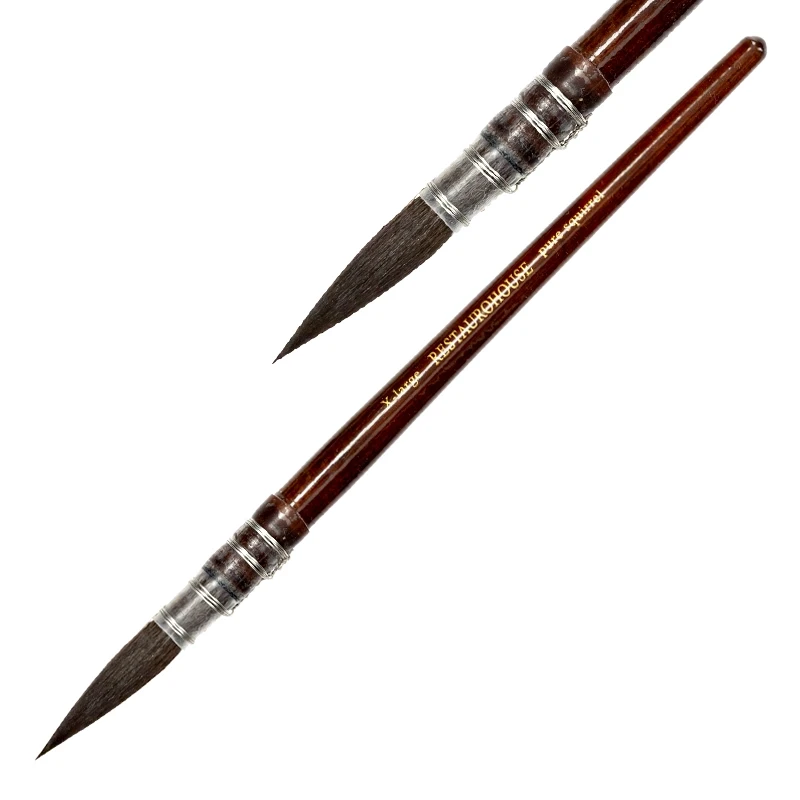 - 100% naturalne włosie wiewiórki: ręcznie układane włosie czarnej wiewiórki jest niezwykle miękkie i elastyczne. Gwarantuje fenomenalne przenoszenie farby na papier.