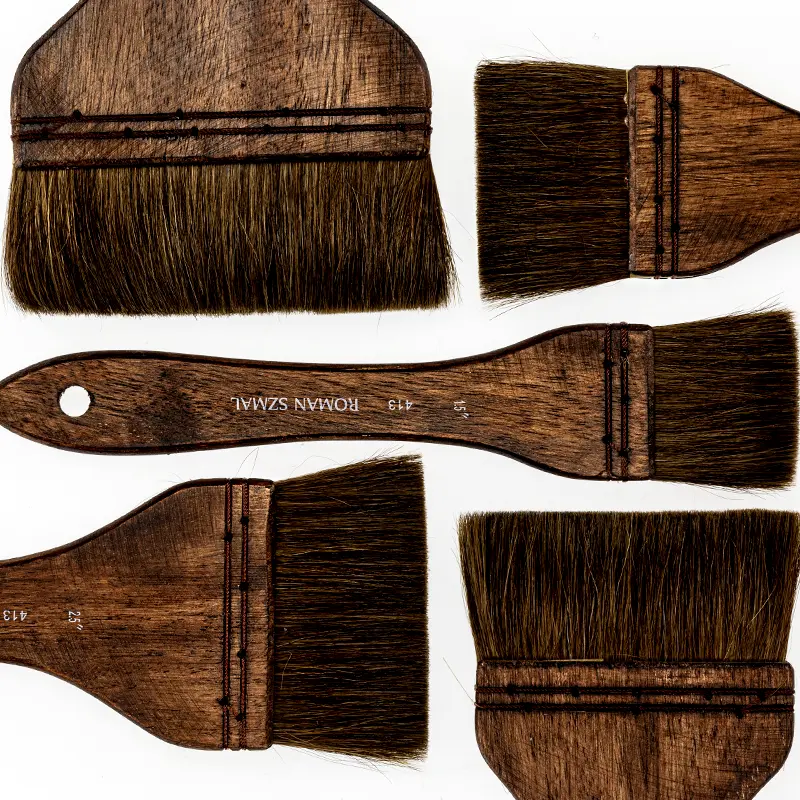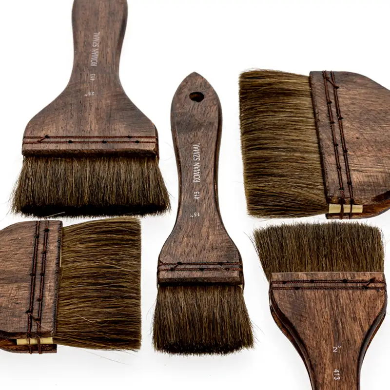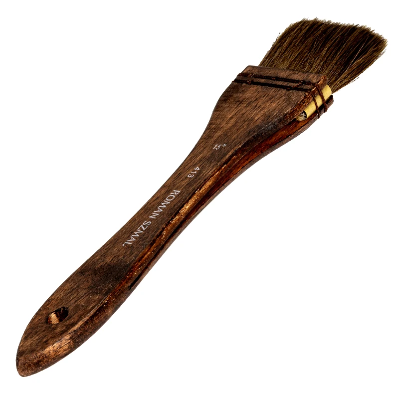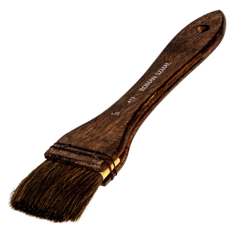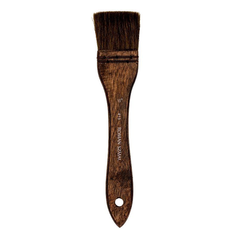 Seria 413 Roman Szmal Art to klasyczny pędzel akwarelowy typu HAKE, stworzony z myślą o pracy na dużych formatach. Wykonany z naturalnego włosia końskiego, łączy w sobie wysoką chłonność i miękkość.