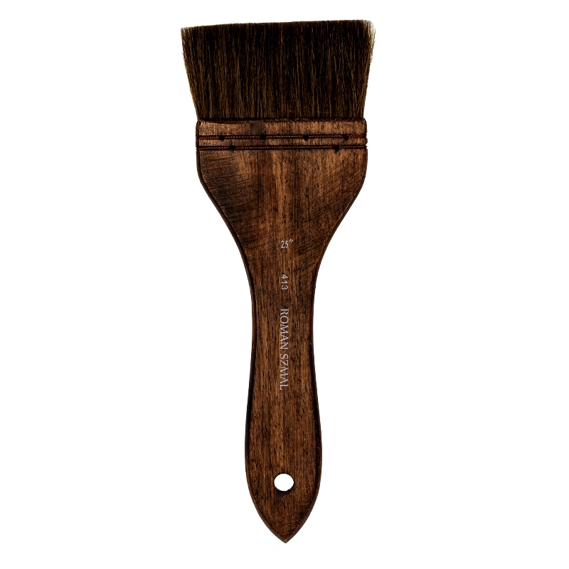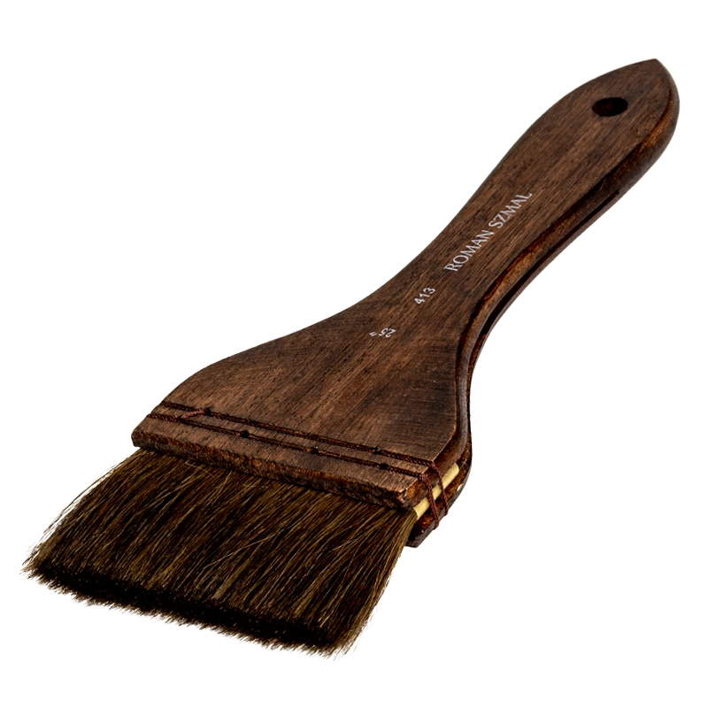 Seria 413 Roman Szmal Art to klasyczny pędzel akwarelowy typu HAKE, stworzony z myślą o pracy na dużych formatach. Wykonany z naturalnego włosia końskiego, łączy w sobie wysoką chłonność i miękkość.
