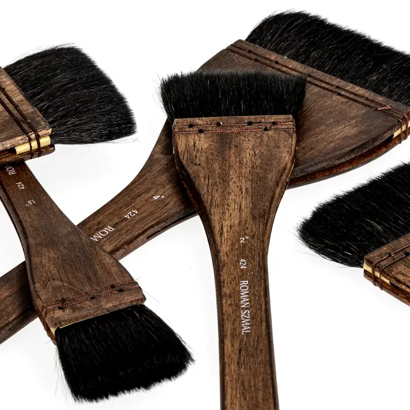 Szeroki pędzel akwarelowy HAKE seria 424 - długa rączka - Roman Szmal Art
