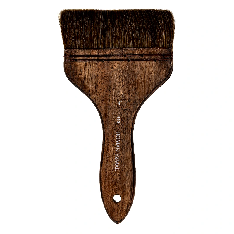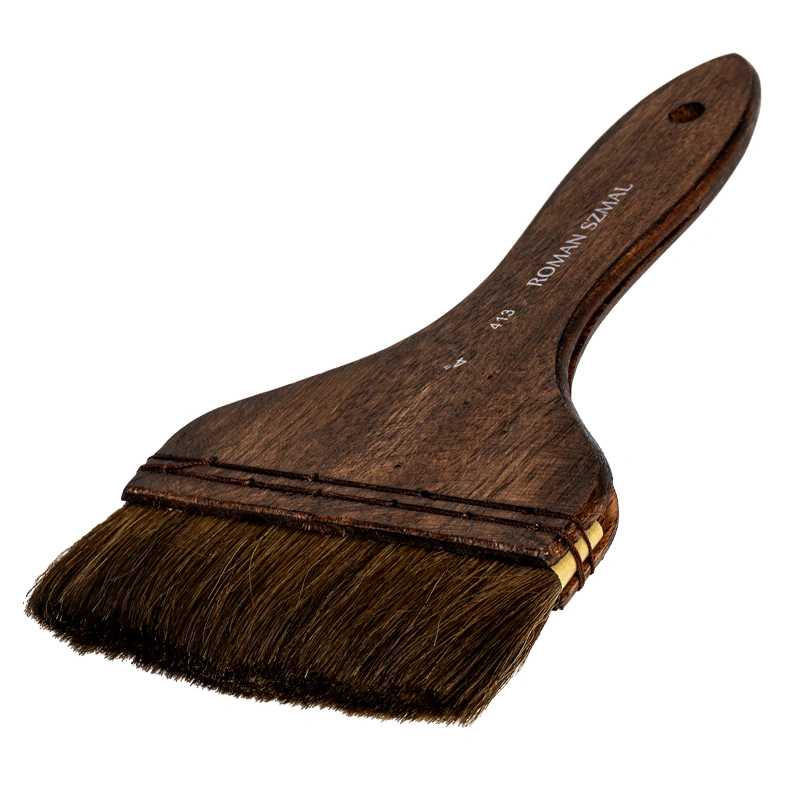Seria 413 Roman Szmal Art to klasyczny pędzel akwarelowy typu HAKE, stworzony z myślą o pracy na dużych formatach. Wykonany z naturalnego włosia końskiego, łączy w sobie wysoką chłonność i miękkość.