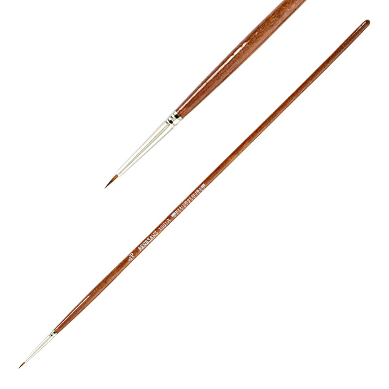Pędzle Renesans 1001 R to seria wysokiej jakości pędzli okrągłych, wykonanych ze sprężystego włosia syntetycznego, osadzonego na długiej, lakierowanej rączce w orzechowym kolorze.