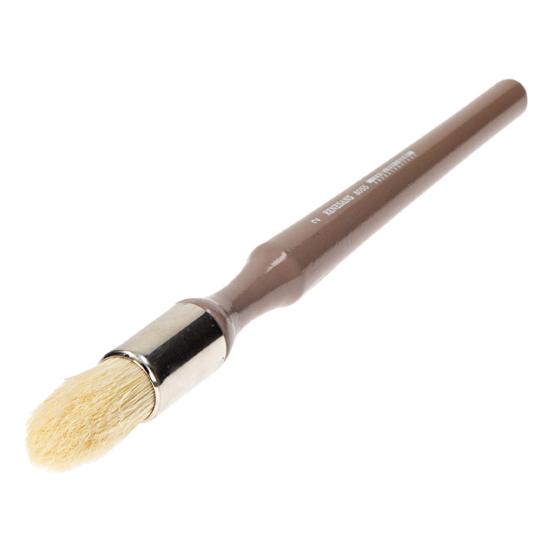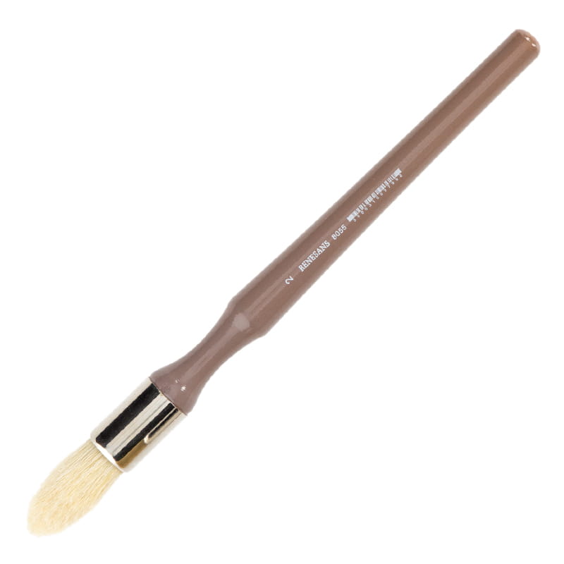 Pędzel firmy Renesans wykonany ze specjalnego włosia "Chungking bristle", jest to szczecina z jednego gatunku świń. Charakteryzuje się długimi, rozdwojonymi flagami włosia, co pozwala na wchłanianie większej ilości farby. Co ważne, przy tworzeniu pędzla zachowuje się naturalne zakończenie włosia, bez jego przycinania. Pędzle z tego rodzaju szczecioną są poszukiwane i bardzo cenione przez malarzy. Włosie tego pędzla są dodatkowo nietypowo ułożone w kształt stożka, co pozwala na uzyskiwanie ciekawych wykończeń malarskich. Można go używać do rozcierania, blendowania, nakładania wosku czy farb olejnych, akrylowych, kredowych.