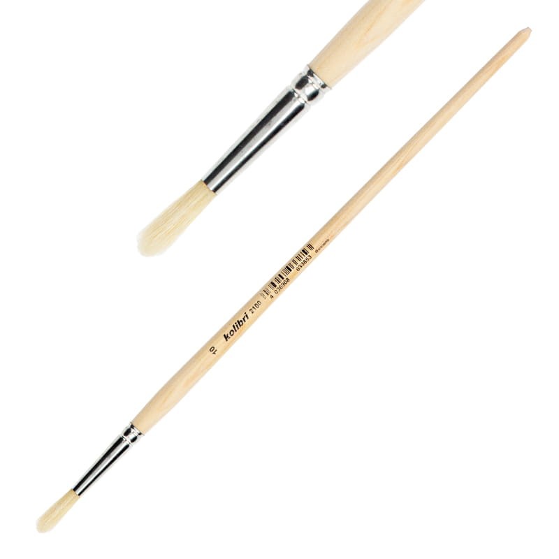 Pędzel z jasnej szczeciny do farb olejnych Kolibri 2100 - 10 - owalno-okrągły - długa rączka