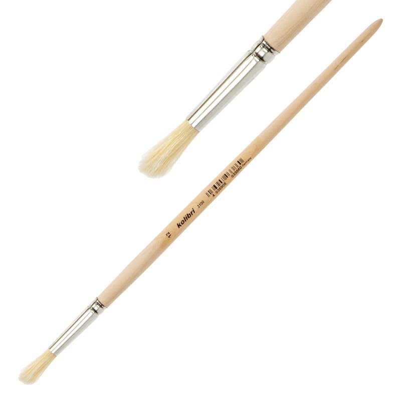Pędzel z jasnej szczeciny do farb olejnych Kolibri 2100 - 12 - owalno-okrągły - długa rączka