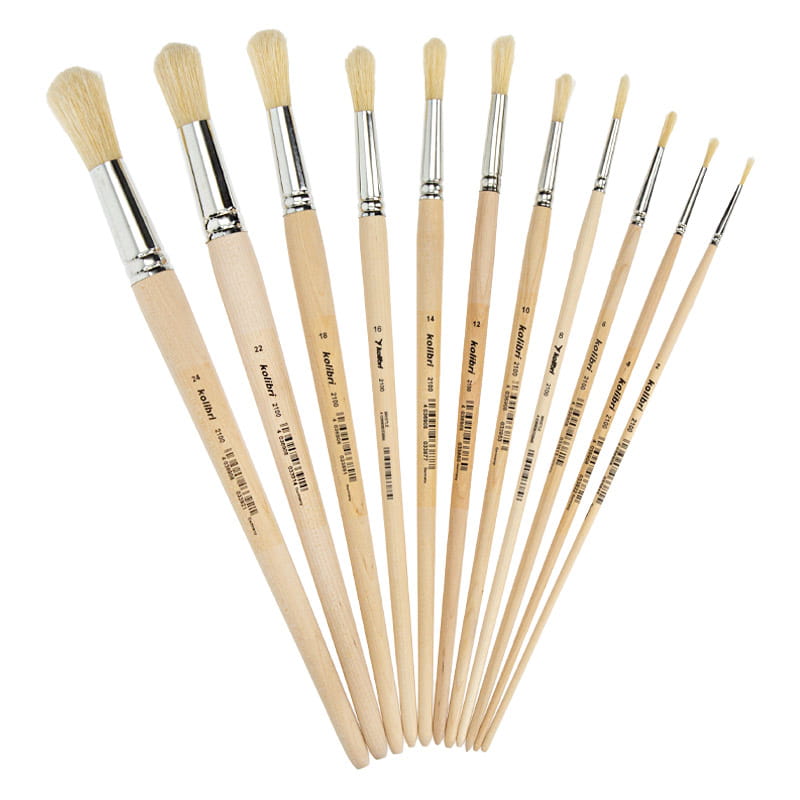 Pędzel z jasnej szczeciny do farb olejnych Kolibri 2100 - 16 - owalno-okrągły - długa rączka