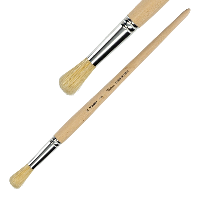 Pędzel z jasnej szczeciny do farb olejnych Kolibri 2100 - 20 - owalno-okrągły - długa rączka