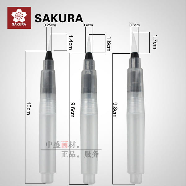 Pędzle Koi Waterbrush są dostępne w trzech rozmiarach: small, medium, large.