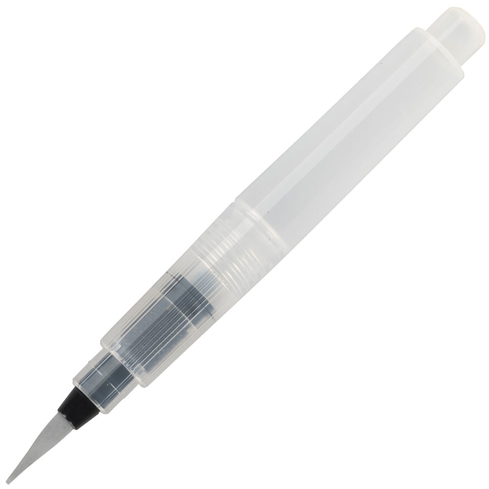 Pędzelek wodny waterbrush jest to pusty pędzel ze zbiorniczkiem. Wypełniony wodą idealnie nadaje się do pracy z akwarelą, tuszem oraz innymi technikami wodnymi oraz rysunkowymi. Pojemniczek można wypełnić także tuszem lub farbą wodną. Końcówka pędzla została wykonana z wysokiej jakości syntetycznego włosia.