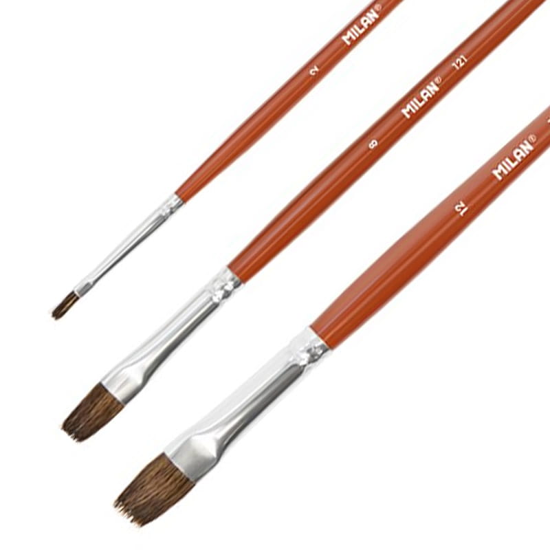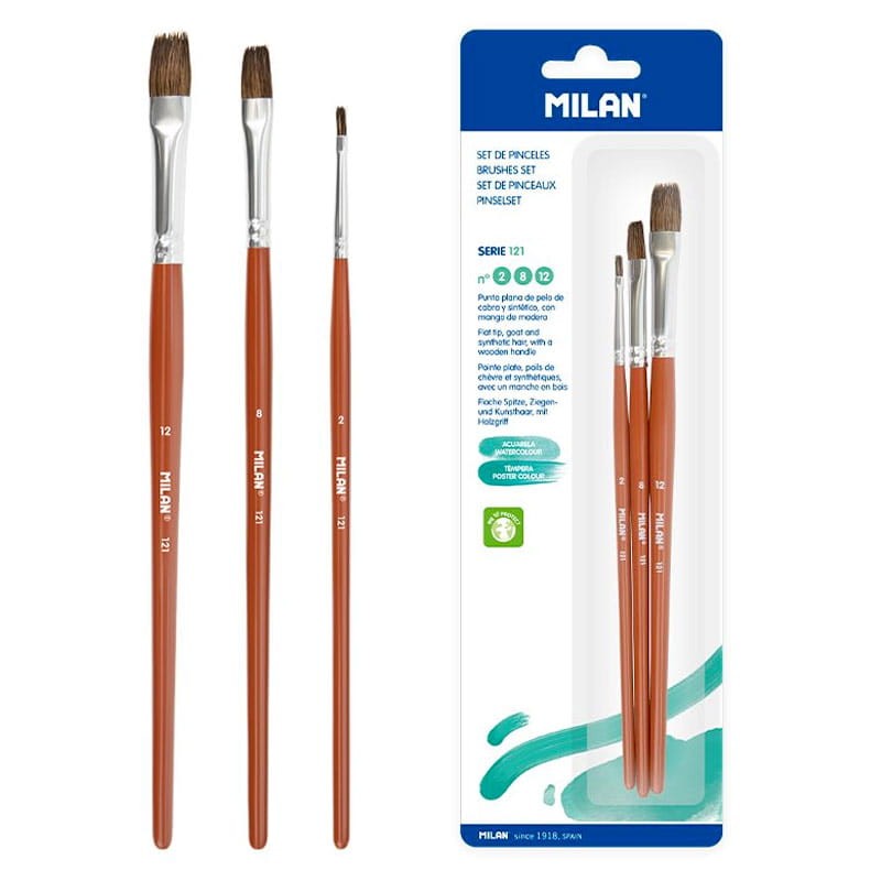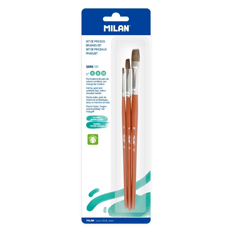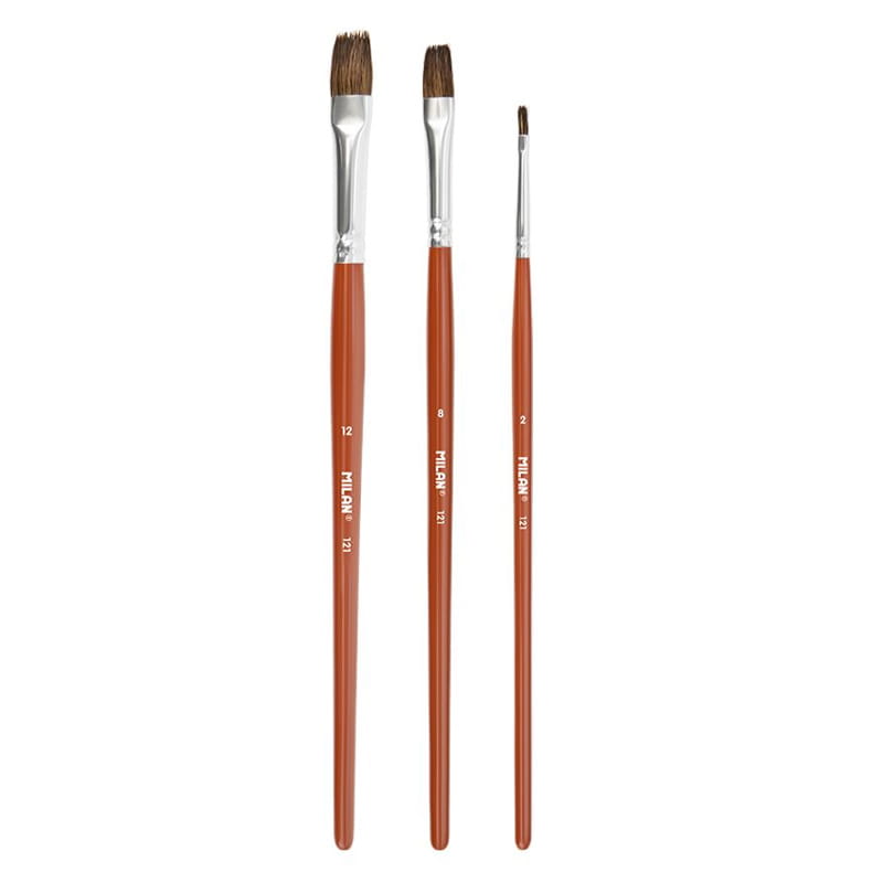 Pędzle naturalne koza + syntetyk Milan zestaw 121 - 3 szt., płaskie nr. 2 8 12