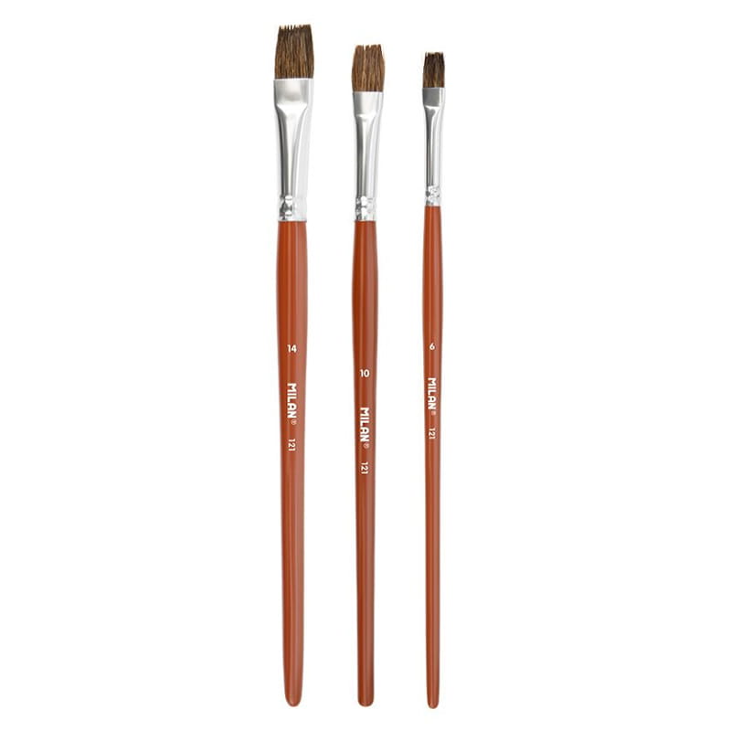 Pędzle naturalne koza + syntetyk Milan zestaw 121 - 3 szt. płaskie nr. 6 10 14