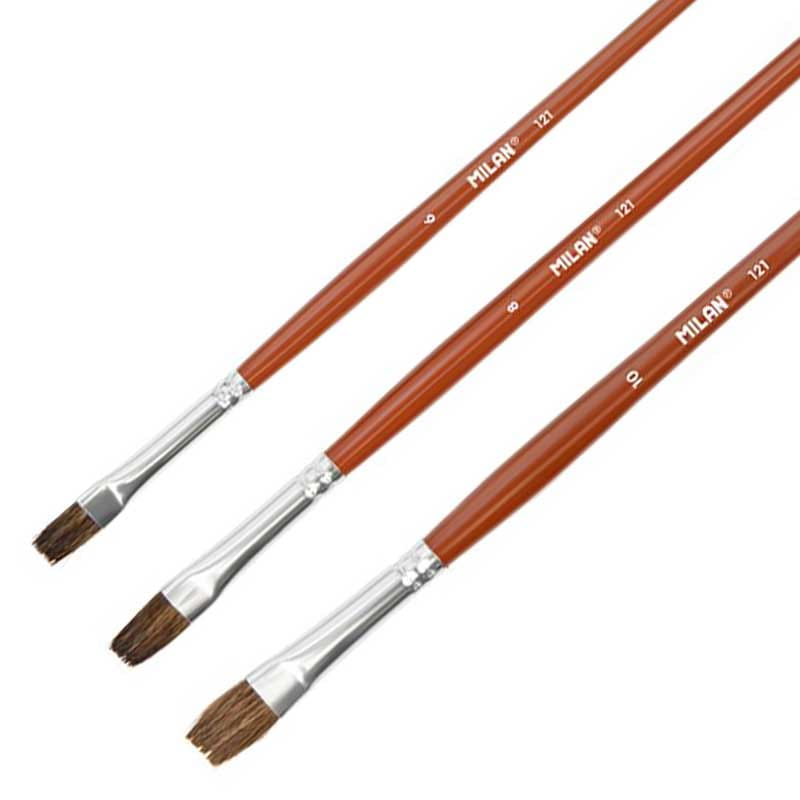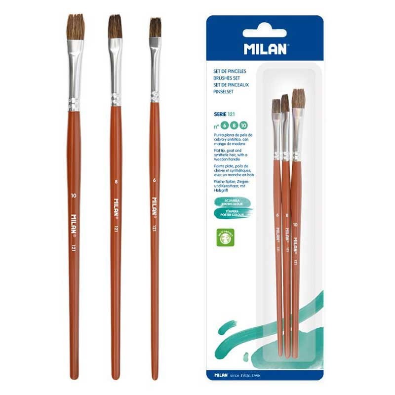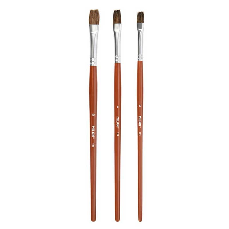 Pędzle naturalne koza + syntetyk Milan zestaw 121 - 3 szt. płaskie nr. 6 8 10