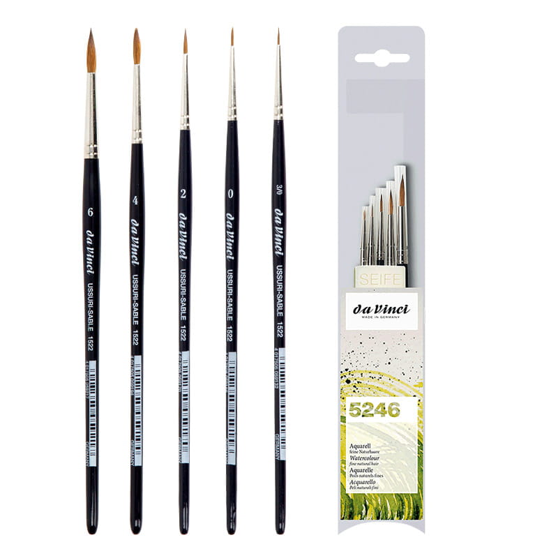 Pędzle naturalne do akwareli i miniatur USSURI - SABLE seria 1522 da Vinci zestaw 5246 - 5 szt. + mydełko