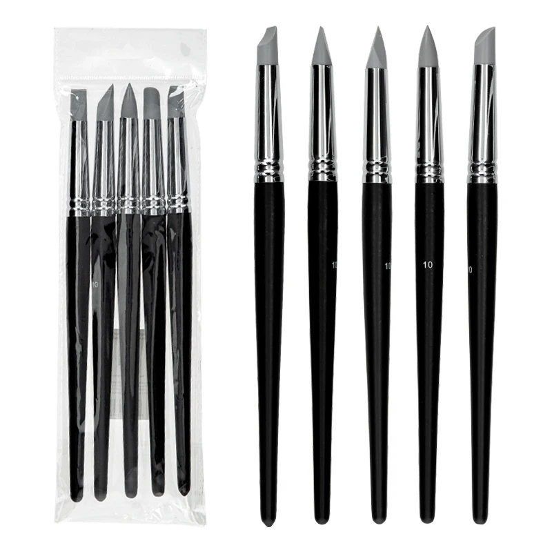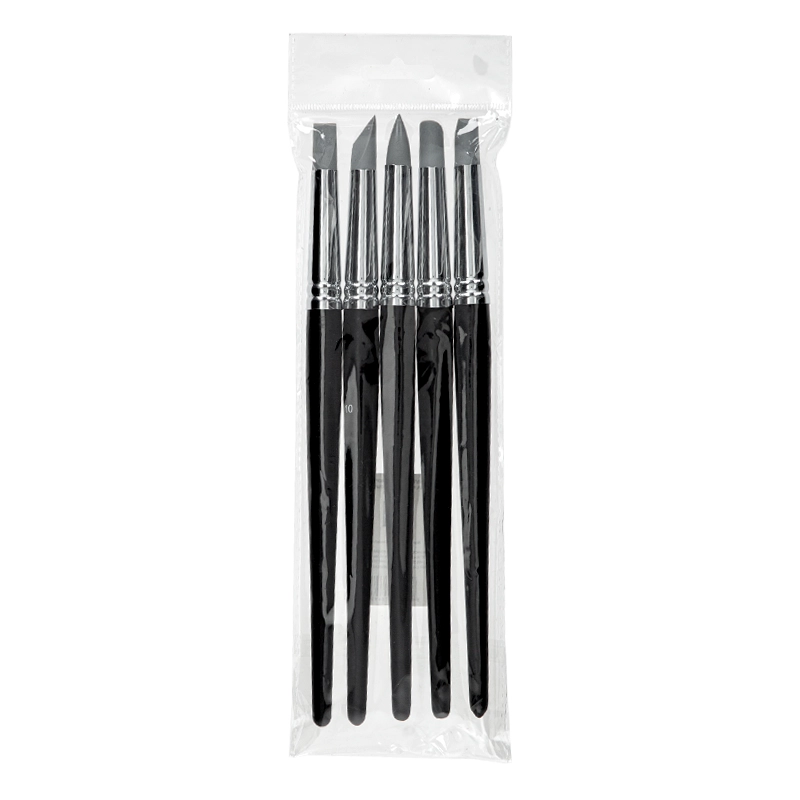 Zestaw pędzli gumowych do artystycznego modelowania powierzchni - 5 różnych końcówek pozwalających uzyskać ciekawe faktury i kształty w masach plastycznych i malarstwie. To narzędzie doskonale sprawdzi się w technice impasto, umożliwiając artystom tworzenie gęstych i teksturowanych warstw farb na płótnie lub innym podłożu, pozwoli na uzyskanie ciekawych efektów trójwymiarowych.