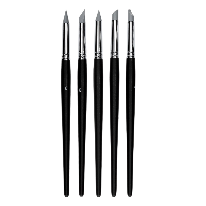 Zestaw pędzli gumowych do artystycznego modelowania powierzchni - 5 różnych końcówek pozwalających uzyskać ciekawe faktury i kształty w masach plastycznych i malarstwie. To narzędzie doskonale sprawdzi się w technice impasto, umożliwiając artystom tworzenie gęstych i teksturowanych warstw farb na płótnie lub innym podłożu, pozwoli na uzyskanie ciekawych efektów trójwymiarowych.