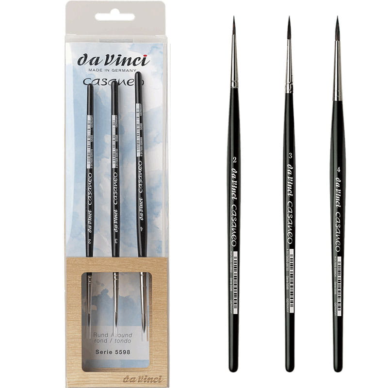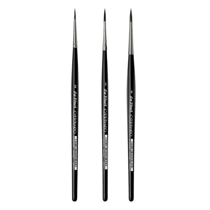 Dzięki syntetycznemu włosiu imitującego naturalne włosie wiewiórki, pędzle są bardzo cienkie i precyzyjne, o świetnych właściwościach chłonięcia wody i farby, którą równomiernie uwalniają na papier. Pędzle da Vinci Casaneo są doskonałe do akwareli, tuszy akrylowych, płynnych farb akrylowych i innych płynnych mediów. Idealne do malowania akwarelowych detali, liternictwa i malowania figurek tuszami akrylowymi.