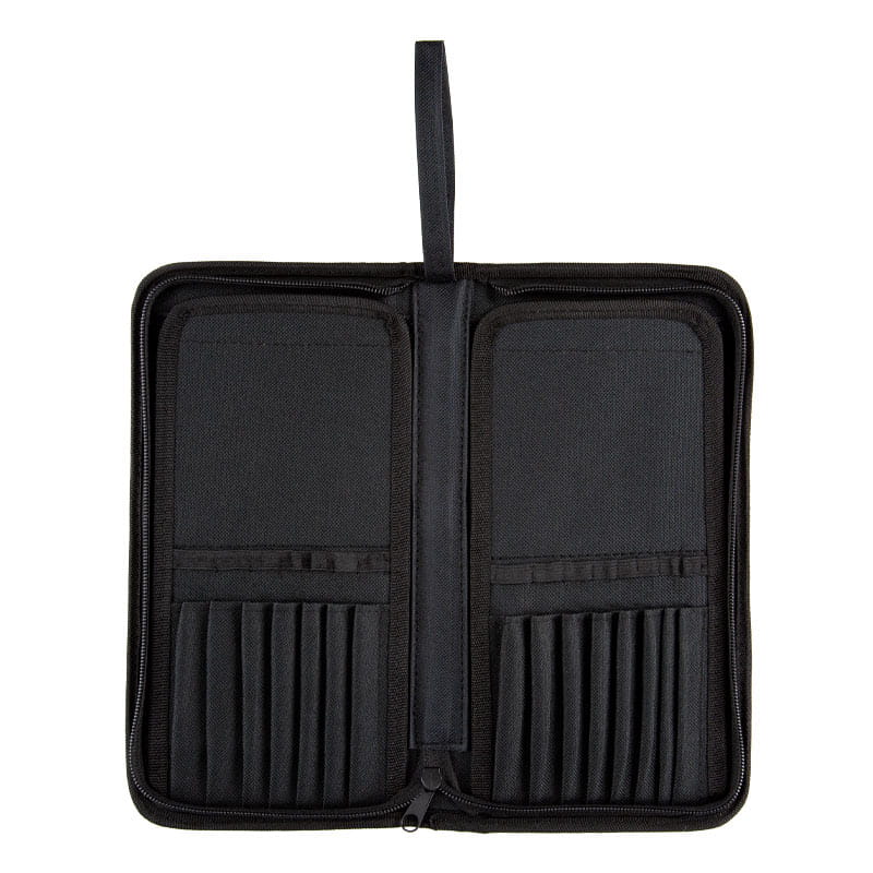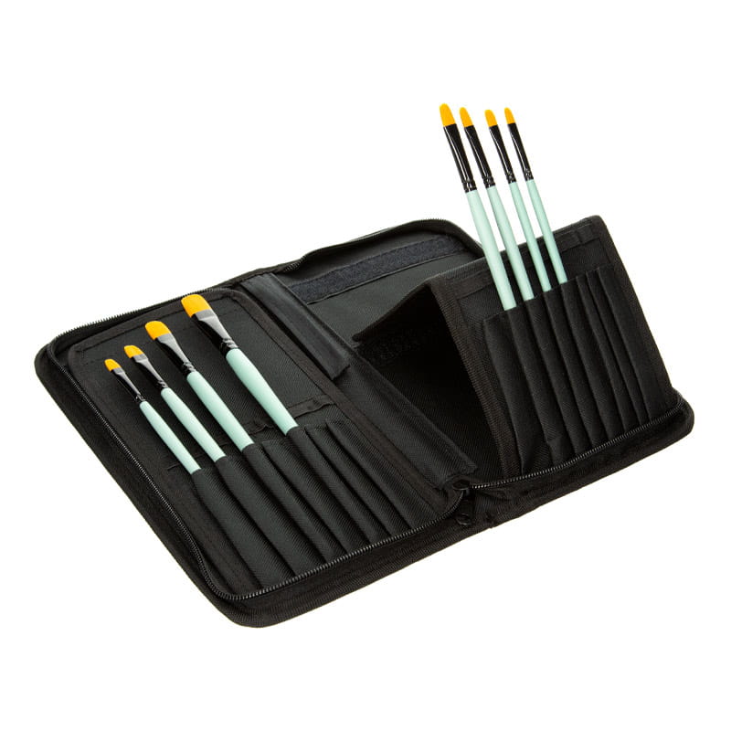 Usztywnione etui na pędzle, które doskonale chroni Twoje pędzle podczas transportu i przechowywania. Pomieści aż 15 pędzli, a umieszczone w środku praktyczne rzepy dają możliwość rozłożenia piórnika na pół leżąco, dzięki czemu podczas malowania możesz mieć łatwy dostęp do przyborów. Dodatkowe usztywnienie wszyte między materiał tylnej części daje pewność, że Twoje pędzle są bezpieczne.