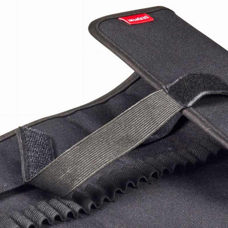 Etui wykonane jest z nylonowego, wytrzymałego materiału. Pomieści 24 szt. kredek lub ołówków. Wyposażony w wewnętrzną kieszeń zamykaną na zamek, umożliwia przechowywanie dodatkowych akcesoriów rysunkowych, jak gumka czy temperówka. Piórnik po zrolowaniu zamyka się przy pomocy elastycznego, gumowego paska zakończonego rzepem. Materiałowy piórnik chroni kredki podczas przemieszczania się, a po rozłożeniu gwarantuje do nich łatwy dostęp. Dodatkowo umożliwia organizację kolorów.