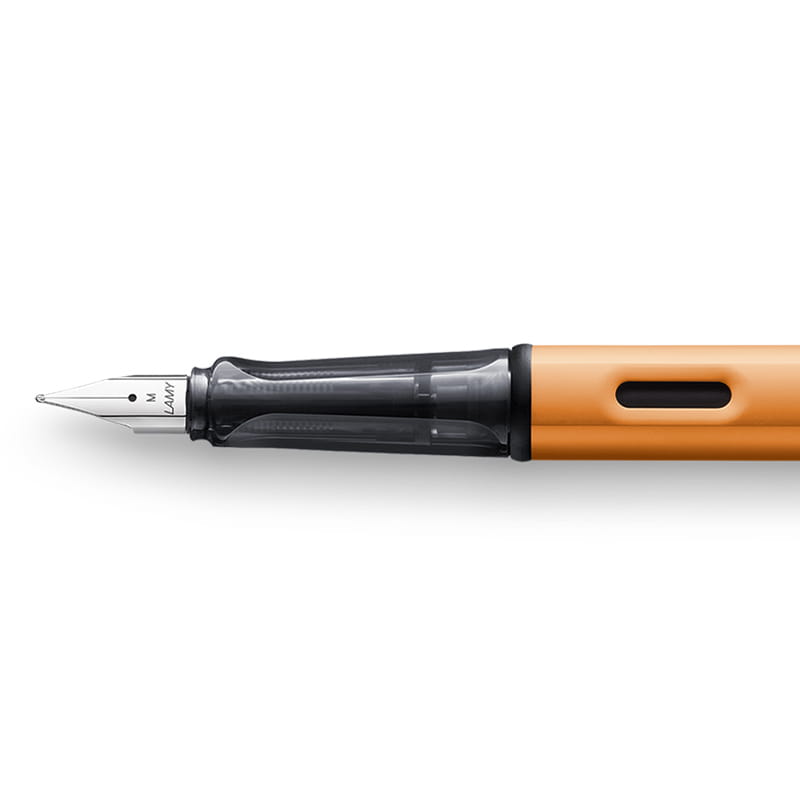 Do stworzenia zarówno korpusu, jak i skuwki pióra wiecznego LAMY AL-star użyto gładkiego, pokrytego lakierem anodowanego aluminium, dzięki któremu pióro nie tylko ma wyjątkowy wygląd, ale jest też lekkie i odporne na uszkodzenia oraz zarysowania czy zadrapania. Umiejscowione w korpusie okienko pozwala na kontrolę aktualnego poziomu atramentu w naboju lub konwerterze, a transparentna strefa chwytu wykonana ze sztucznego tworzywa ABS pokazuje wnętrze pióra wiecznego i pozwala przyjrzeć się jego mechanizmowi. Ergonomiczny, wyprofilowany uchwyt w połączeniu z bardzo dobrym wyważeniem sprawia, że pióro AL-star zapewnia wysoki komfort pisania, pozwalając na tworzenie długich notatek i listów bez obaw o zmęczenie dłoni. Chromowany, metalowy, sprężysty klip pozwala na zaczepienie instrumentu piśmiennego o kartkę, notes lub kieszonkę. Polerowana stalówka wykonana ze stali nierdzewnej gwarantuje gładkie, przyjemne pisanie i trwałość.