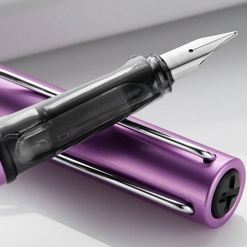 Do stworzenia zarówno korpusu, jak i skuwki pióra wiecznego LAMY AL-star użyto gładkiego, pokrytego lakierem anodowanego aluminium, dzięki któremu pióro nie tylko ma wyjątkowy wygląd, ale jest też lekkie i odporne na uszkodzenia oraz zarysowania czy zadrapania. Umiejscowione w korpusie okienko pozwala na kontrolę aktualnego poziomu atramentu w naboju lub konwerterze, a transparentna strefa chwytu wykonana ze sztucznego tworzywa ABS pokazuje wnętrze pióra wiecznego i pozwala przyjrzeć się jego mechanizmowi. Ergonomiczny, wyprofilowany uchwyt w połączeniu z bardzo dobrym wyważeniem sprawia, że pióro AL-star zapewnia wysoki komfort pisania, pozwalając na tworzenie długich notatek i listów bez obaw o zmęczenie dłoni. Chromowany, metalowy, sprężysty klip pozwala na zaczepienie instrumentu piśmiennego o kartkę, notes lub kieszonkę. Polerowana stalówka wykonana ze stali nierdzewnej gwarantuje gładkie, przyjemne pisanie i trwałość.