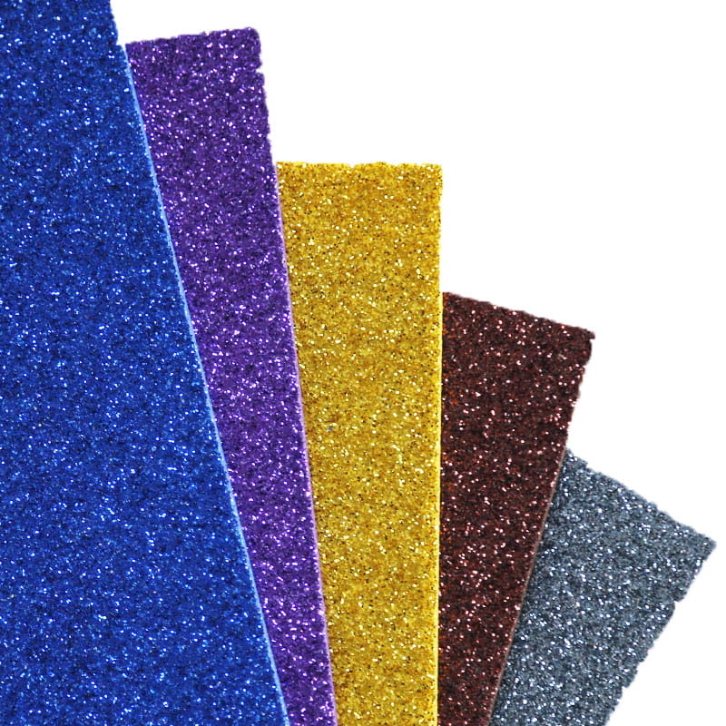 - Miękkie i elastyczne arkusze z mikrogumy z efektem brokatu.