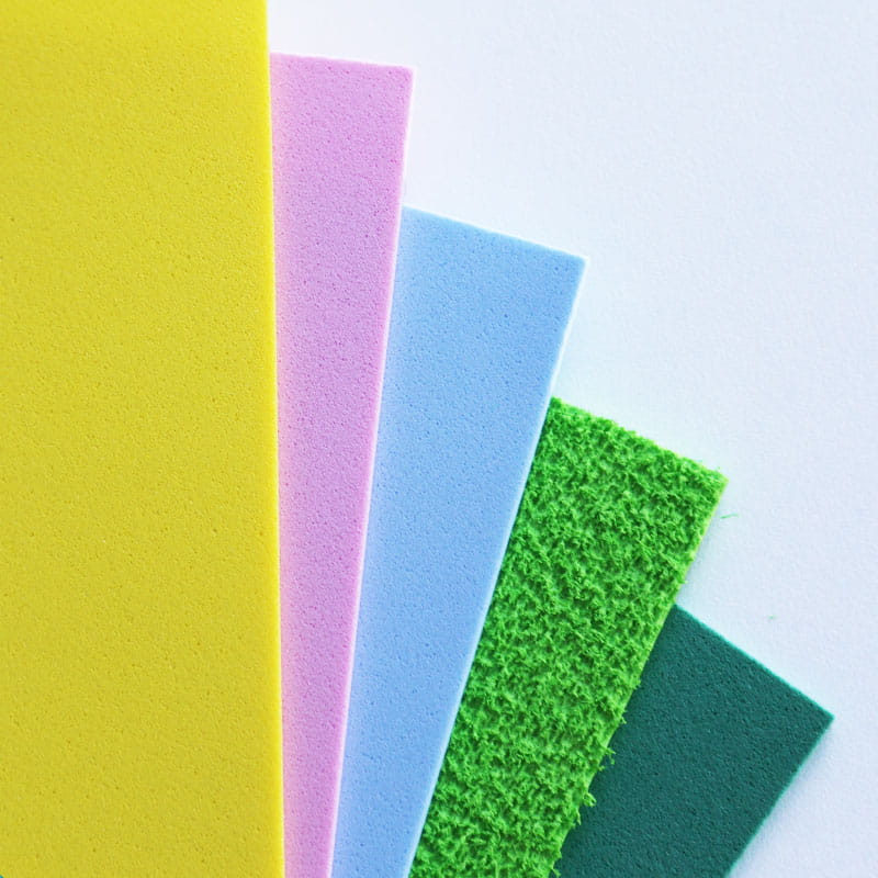 - Miękkie i elastyczne arkusze z kolorowej mikrogumy.