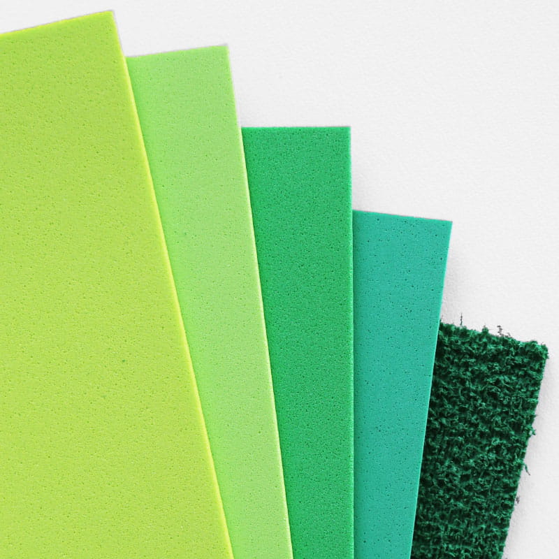 - Miękkie i elastyczne arkusze z mikrogumy w odcieniach zieleni.