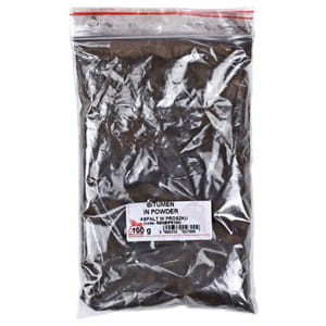 Asfalt w postaci czarnego granulatu. Bitum w proszku wchodzi w skład werniksów graficznych. W postaci sypkiej służy do napylania w heliograwiurze, akwatincie i odprysku.