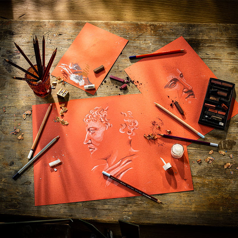 Blok do pasteli z arkuszami w oryginalnym kolorze delikatnej czerwieni nadaje pracom wyjątkowego charakteru, doskonale podbijając jasne kolory.