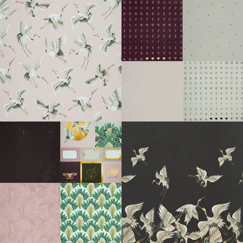 Blok z kolorowymi papierami ozdobnymi z grafikami z eleganckimi motywami - delikatnymi patternami, ptakami, gałązkami roślin, złotem itp. oraz naklejkami przedstawiającymi duże litery alfabetu, cyfry i symbole. Blok kreatywny doskonale sprawdzi się przy tworzeniu przeróżnych kreatywnych projektów, takich jak ręcznie robione kartki okolicznościowe, albumy scrapbookingowe, zaproszenia, etykiety, exploding boxów, pudełek i przeróżnych ozdób wykonanych z papieru.