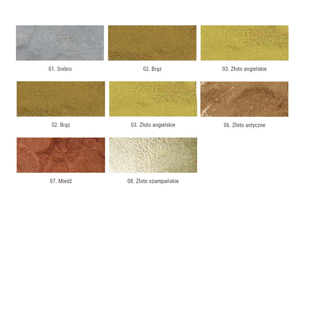 Brąz w płynie to szybkoschnąca farba metaliczna na bazie żywic syntetycznych, rozpuszczalników i pigmentów proszkowanego aluminium. Dobrze przywierają do wielu powierzchni, takich jak drewno, plastik, metal, nadając wybranej powierzchni metaliczny wygląd. Nakłada się bardzo łatwo, przy pomocy pędzla, nadając przedmiotom aspekt prawdziwego metalu. Jeśli konieczne będzie delikatne rozcieńczenie oraz do mycia pędzli stosować należy ksylen. Przed użyciem należy dokładnie wymieszać farbę. Doskonała do dekorowania i retuszowania ram.