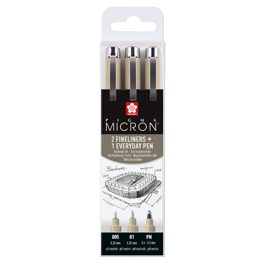 Zestaw Pigma Micron Urban Set od firmy Sakura zawiera 3 cienkopisy: