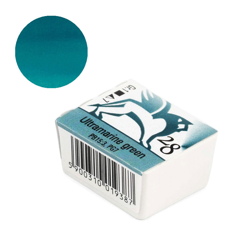 Farba akwarelowa Renesans półkostka - 28 Zieleń ultramaryna