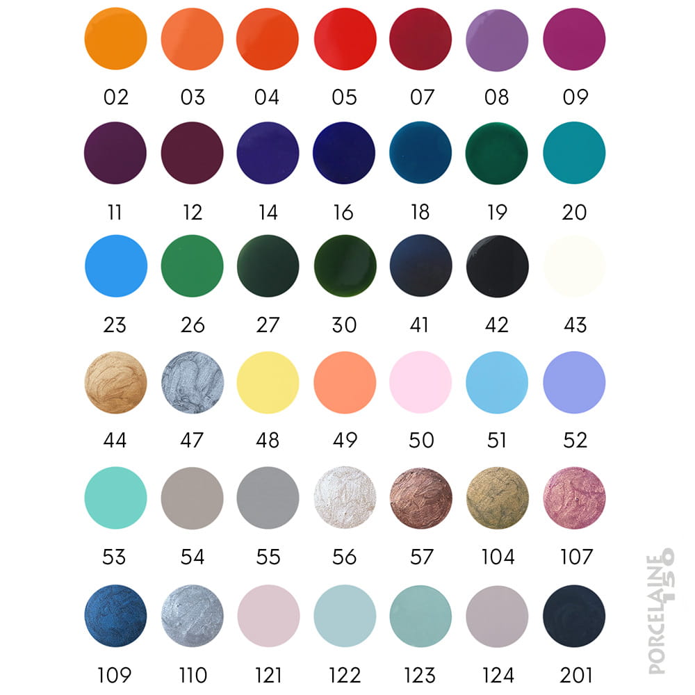 Farby do porcelany Porcelain 150°C Pebeo 45 ml jest to gama kilkudziesięciu kolorów, które w połączeniu z konturówką sprawią, że profesjonalnie wyglądająca emalia porcelanowa może znaleźć się w posiadaniu każdego. Przeznaczone są do zdobienia ceramiki odpornej na działanie temperatury 150°C. Po nałożeniu dekoracji na wyrób, utrwala się ją w domowym piekarniku w temperaturze 150C. Wypalone zdobienie charakteryzuje się głębokim i błyszczącym kolorem oraz doskonałą trwałością. Dodatkowo oferta jest uzupełniona o media matowe i błyszczące, rozcieńczalniki i podkład.