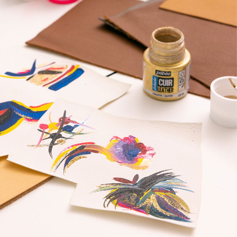 Farby Pebeo Setacolor Leather to gama satynowo-matowych farb do skóry, które mają wysoką odporność na zarysowania i zgięcia. Farby powinno się nakładać, cienkimi warstwami (producent zaleca maksymalnie 3 warstwy i odczekanie minimum 15 min między warstwami). Setacolor Leather mają doskonałe krycie.