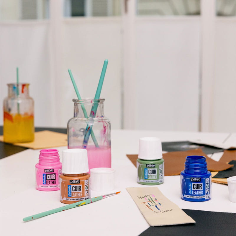 Farby Pebeo Setacolor Leather to gama satynowo-matowych farb do skóry, które mają wysoką odporność na zarysowania i zgięcia. Farby powinno się nakładać, cienkimi warstwami (producent zaleca maksymalnie 3 warstwy i odczekanie minimum 15 min między warstwami). Setacolor Leather mają doskonałe krycie.