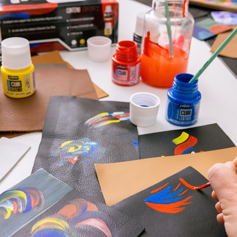 Farby Pebeo Setacolor Leather to gama satynowo-matowych farb do skóry, które mają wysoką odporność na zarysowania i zgięcia. Farby powinno się nakładać, cienkimi warstwami (producent zaleca maksymalnie 3 warstwy i odczekanie minimum 15 min między warstwami). Setacolor Leather mają doskonałe krycie.