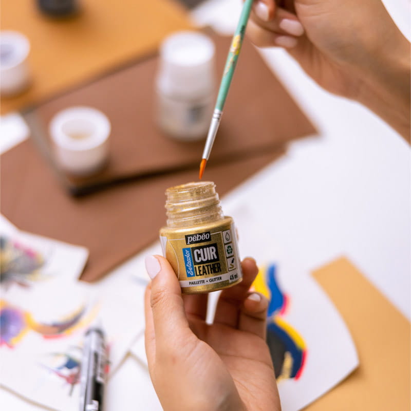 Farby Pebeo Setacolor Leather to gama satynowo-matowych farb do skóry, które mają wysoką odporność na zarysowania i zgięcia. Farby powinno się nakładać, cienkimi warstwami (producent zaleca maksymalnie 3 warstwy i odczekanie minimum 15 min między warstwami). Setacolor Leather mają doskonałe krycie.