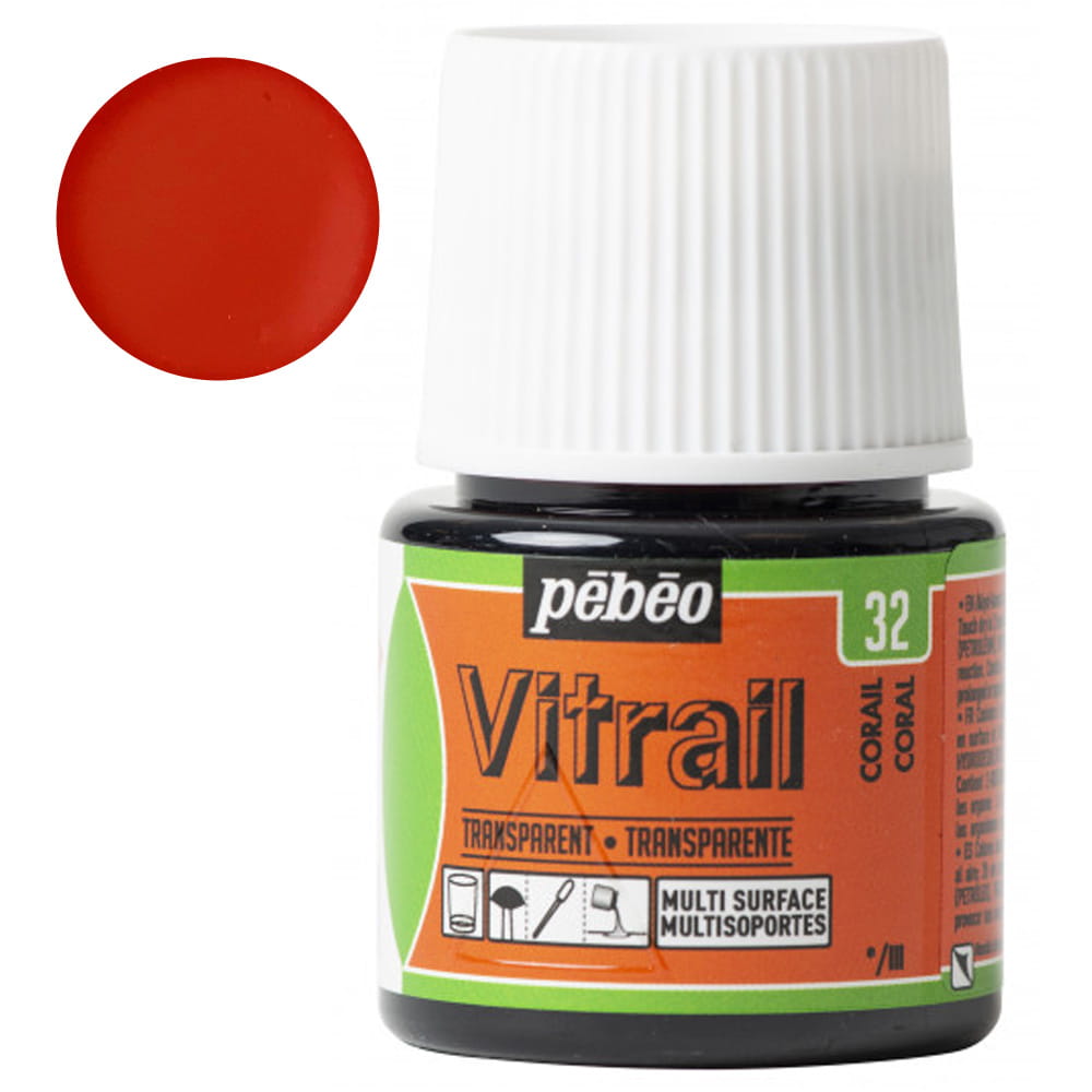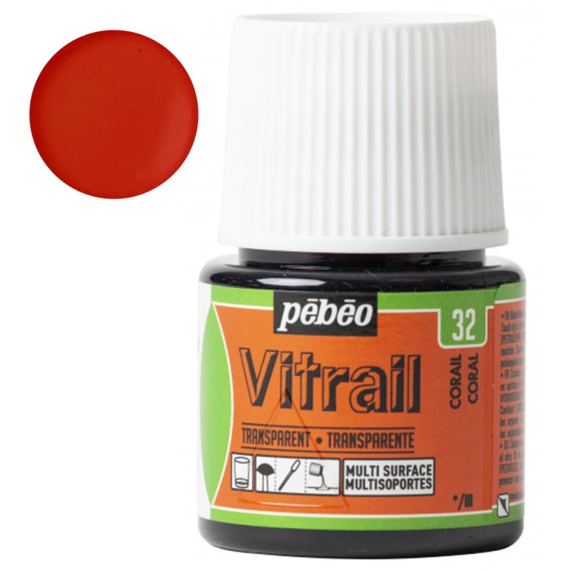 Farby do szkła Vitrail Pebeo są farbami wysokiej jakości, doskonale sprawdzą się przy tworzeniu witraży. W swojej palecie mają kolory transparentne, kryjące oraz opalizujące. Farby rozprowadzają się bardzo dobrze, a mieszanie kolorów nie sprawia żadnych trudności. Odporne na światło i działanie promieni UV. Wstępne wyschnięcie następuje po 2 godzinach, natomiast całkowite po 10 godzinach. Nie wymagają wypalania. Przed przystąpieniem do malowania należy starannie wyczyścić dekorowaną powierzchnię. Czyszczenie pędzli odbywa się przy pomocy terpentyny lub białego spirytusu. Do farb Vitrail polecamy konturówkę Relief.