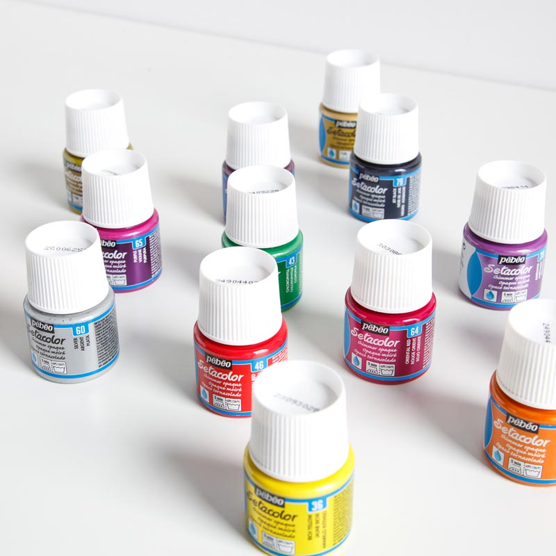 Farby do tkanin Setacolor są żywe i błyszczące, seria Setacolor Shimmer ma do zaoferowania kolory z dodatkiem mieniących się drobinek. Dobrze kryją - mogą być używane zarówno na jasnych, jak i na ciemnych tkaninach (bawełna, jeans, poliester, wełna itp.) Ich konsystencja nadaje się szczególnie dobrze do aplikacji pędzlem.