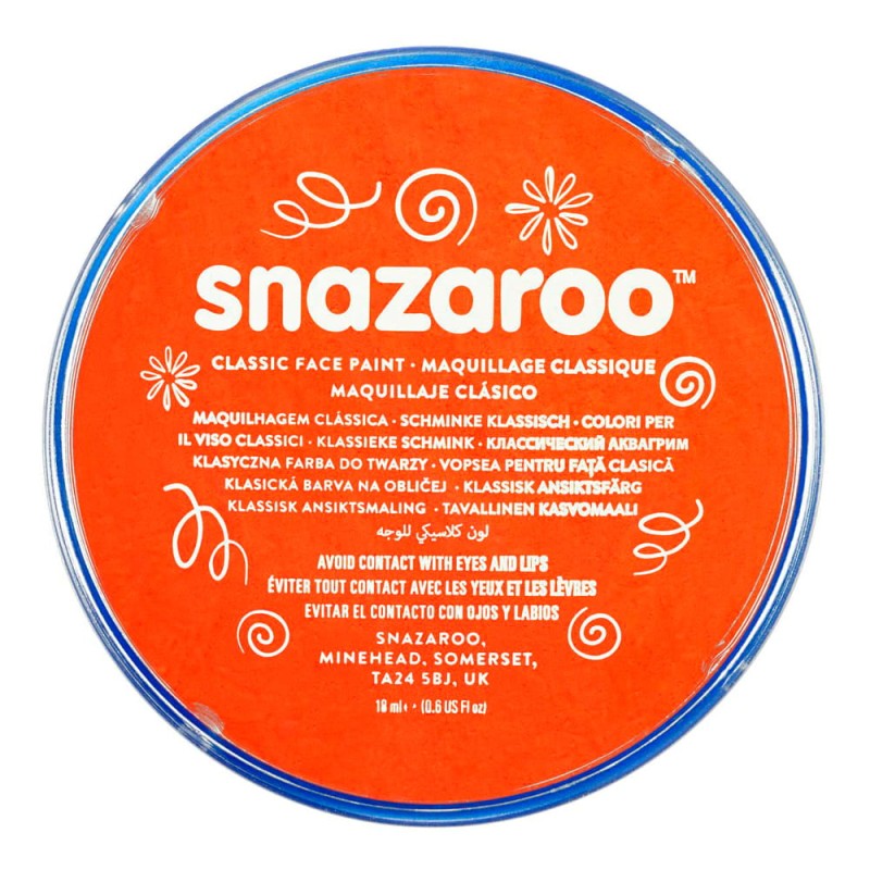 Farba Snazaroo Classic - kolekcja kolorów matowych. Bezpieczna i łatwa w użyciu farba do malowania twarzy i ciała. Produkowana na bazie wody. Łatwo ją nałożyć i zmyć. Nakładamy zwilżoną w wodzie gąbką, a zmywamy wodą z mydłem.