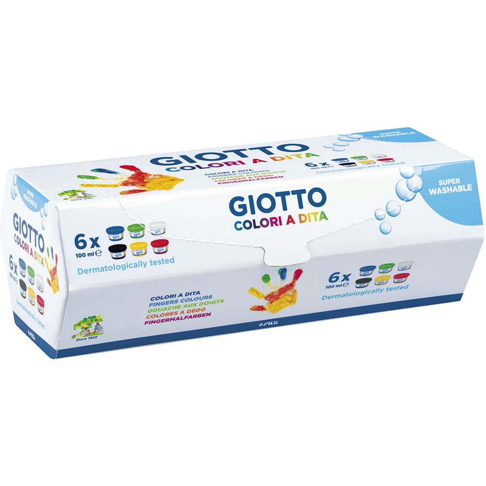 Farby do Giotto Colori a dita to doskonały sposób na wspólne spędzanie czasu z dzieckiem i odkrywania świata kolorów. Farby stworzone z myślą o dzieciach już od 2 lat, są nieszkodliwe, przebadane dermatologicznie. W zestawie 6 żywych kolorów: biały, żółty, czerwony, zielony niebieski, czarny. Farby posiadają przyjemną konsystencję, gładko rozprowadzają się po malowanej powierzchni. Łatwo zmywalne ze skóry rąk, wystarczy odrobina ciepłej wody i mydło. Farby bez trudności spierają się także z ubrań.