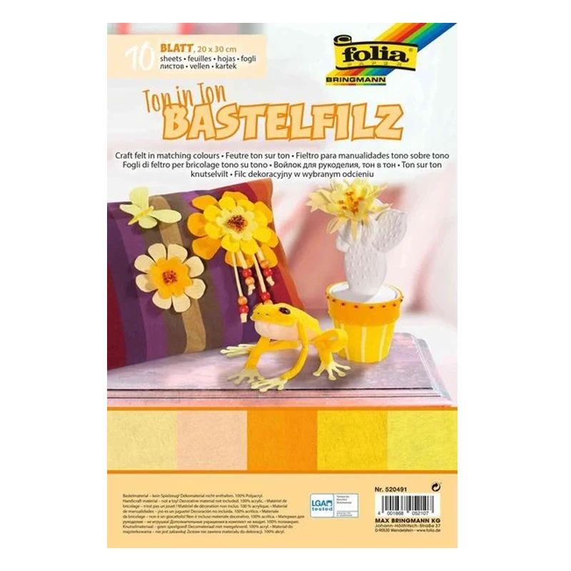 Filc dekoracyjny Folia Bringmann 20x30 cm, 10 ark - MIX żółty