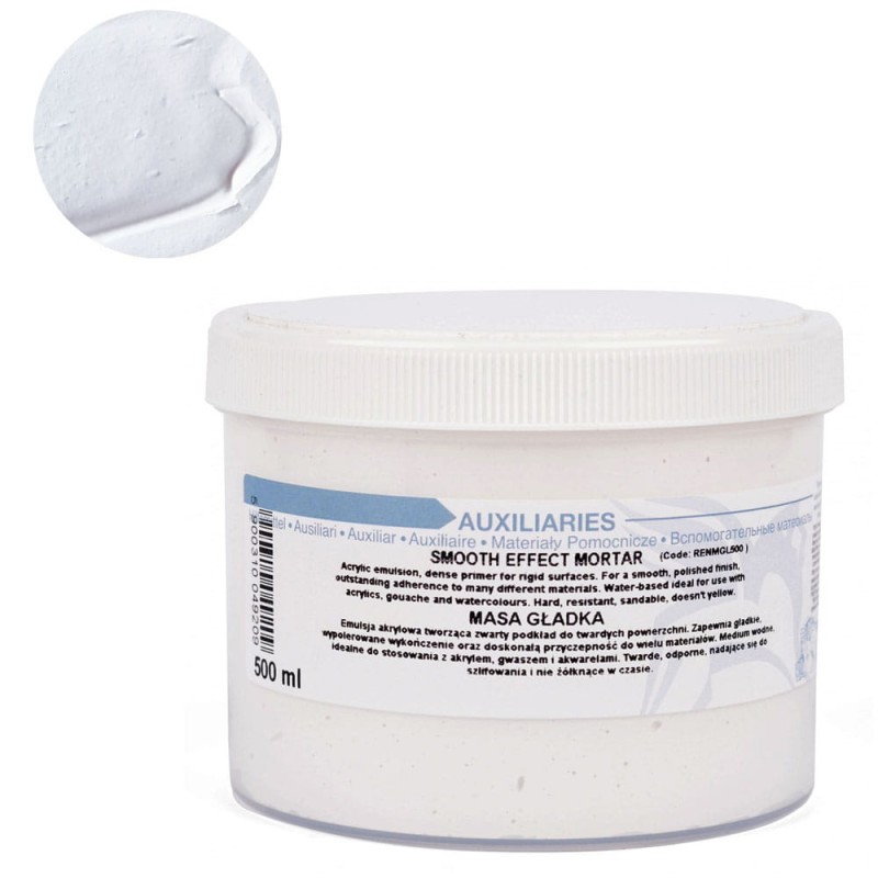 Emulsja akrylowa tworząca zwarty podkład do twardych powierzchni. Zapewnia gładkie, wypolerowane wykończenie jak również doskonałą przyczepność wielu materiałów. Medium wodne, idealne do stosowania z farbami akrylowymi, gwaszem i farbami akwarelowymi. Po wyschnięciu masa staje się twarda, odporna i podatna na szlifowanie. Masa nie żółknie z czasem.