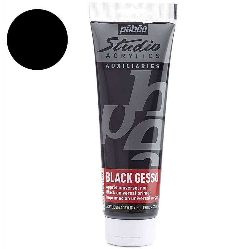 Czarne Gesso to uniwersalny, czarny grunt malarski na bazie żywicy akrylowej przeznaczony do farb olejnych, akrylowych i gwaszy. Schnie bardzo szybko, przywierając perfekcyjnie do wszystkich, odtłuszczonych i zmatowionych powierzchni. Gesso po wyschnięciu jest matowe i porowate, co poprawia przyczepność farby.