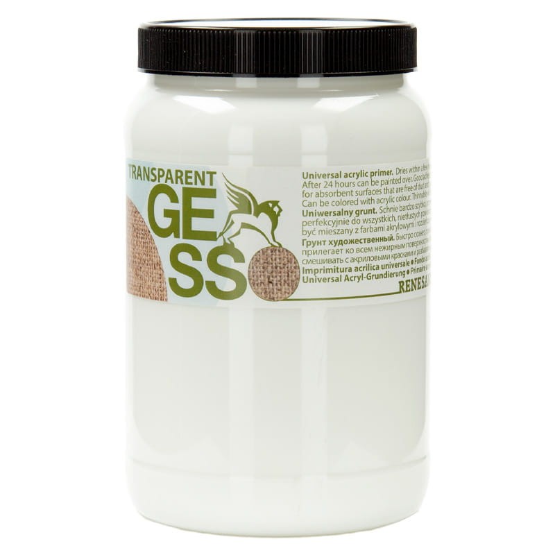 Gesso to uniwersalny transparentny grunt malarski, który może być mieszany z farbami akrylowymi i rozcieńczany wodą. Dzięki zastosowaniu żywicy akrylowej doskonale nadaje się do gruntowania płótna malarskiego, ale można używać go również jako pastę strukturalną. Cechuje się bardzo krótkim czasem schnięcia. Doskonale przywiera do wszystkich odtłuszczonych powierzchni.