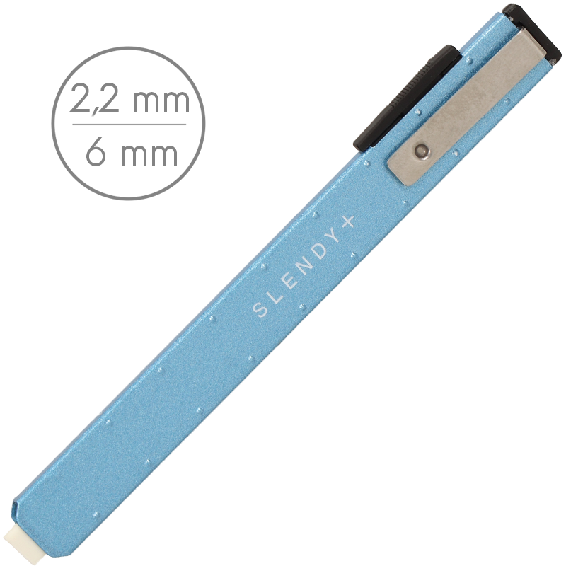 Wygodna w obsłudze gumka automatyczna z wymiennym wkładem i cienką, prostokątną końcówką o wymiarach 2,2 x 6 mm. Idealna do precyzyjnego i dokładnego ścierania, korygowania detali. Wkłady posiadają ząbkowane boki, dzięki czemu nie przesuwają się w obudowie. Smukła, metalowa obudowa dostępna w kilku kolorach. Lekka i wytrzymała. Gumka zarówno dla profesjonalistów, jak i hobbystów.