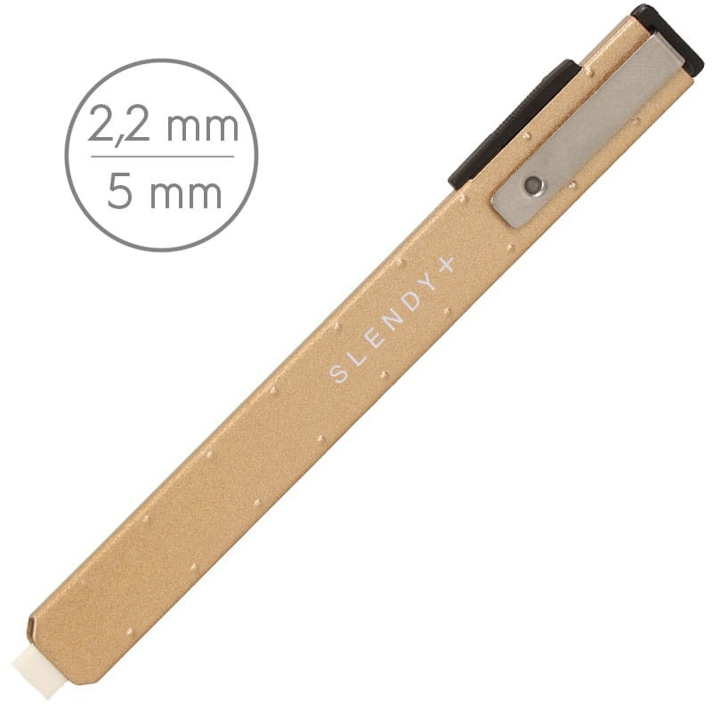 Wygodna w obsłudze gumka automatyczna z wymiennym wkładem i cienką, prostokątną końcówką o wymiarach 2,2 x 6 mm. Idealna do precyzyjnego i dokładnego ścierania, korygowania detali. Wkłady posiadają ząbkowane boki, dzięki czemu nie przesuwają się w obudowie. Smukła, metalowa obudowa dostępna w kilku kolorach. Lekka i wytrzymała. Gumka zarówno dla profesjonalistów, jak i hobbystów.